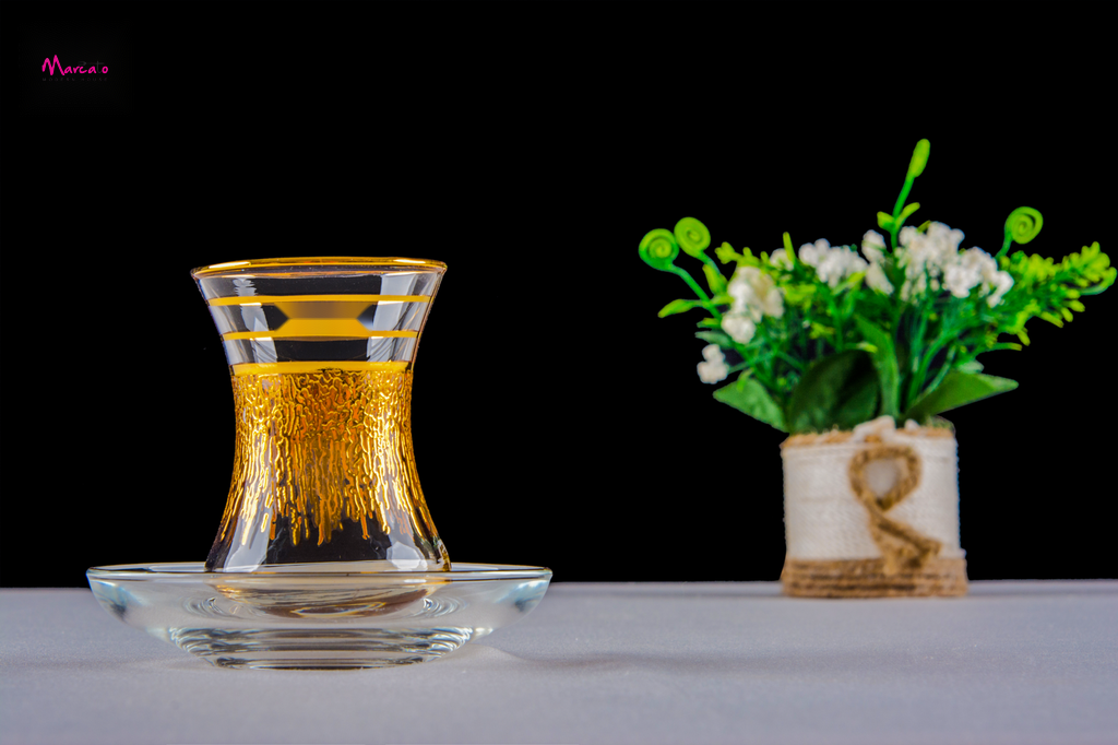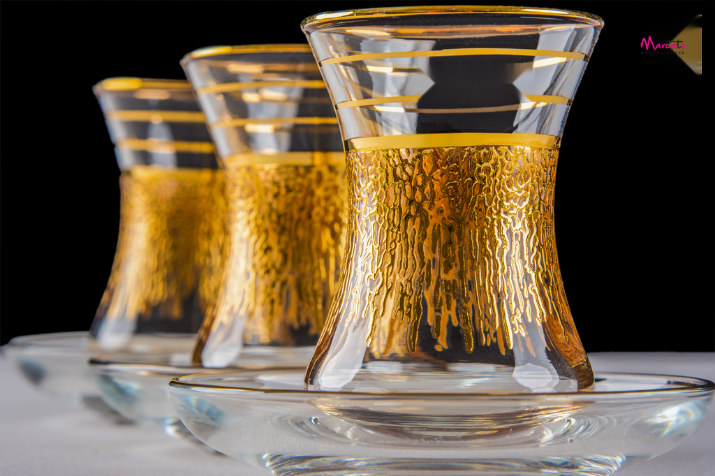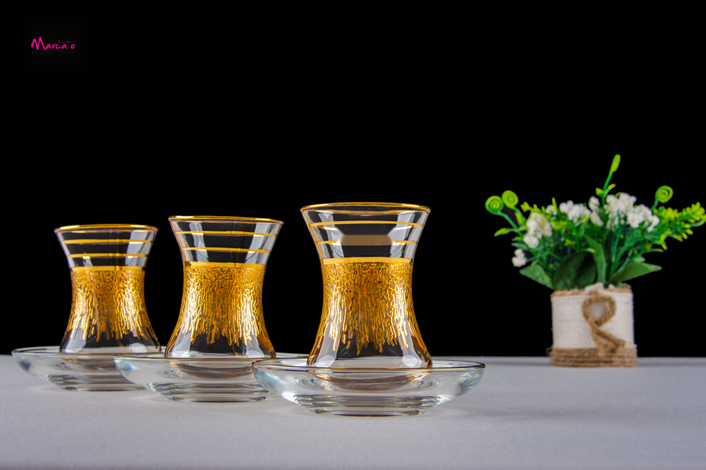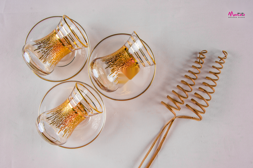 طقم استكانة 12 قطعه بالطبق ديكاله دهب